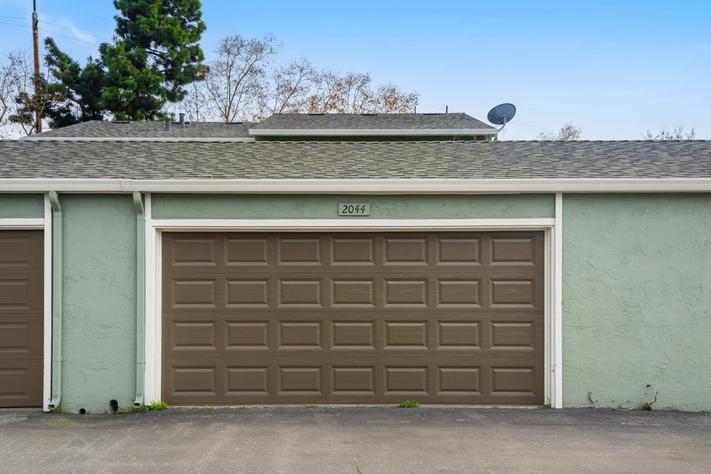 Additional highlights include a side-by-side two-car garage, in-unit washer and dryer hookups, and a roof that has been updated in recent years. Residents enjoy access to a community pool and expansive greenbelt areas, offering space to relax and unwind.
